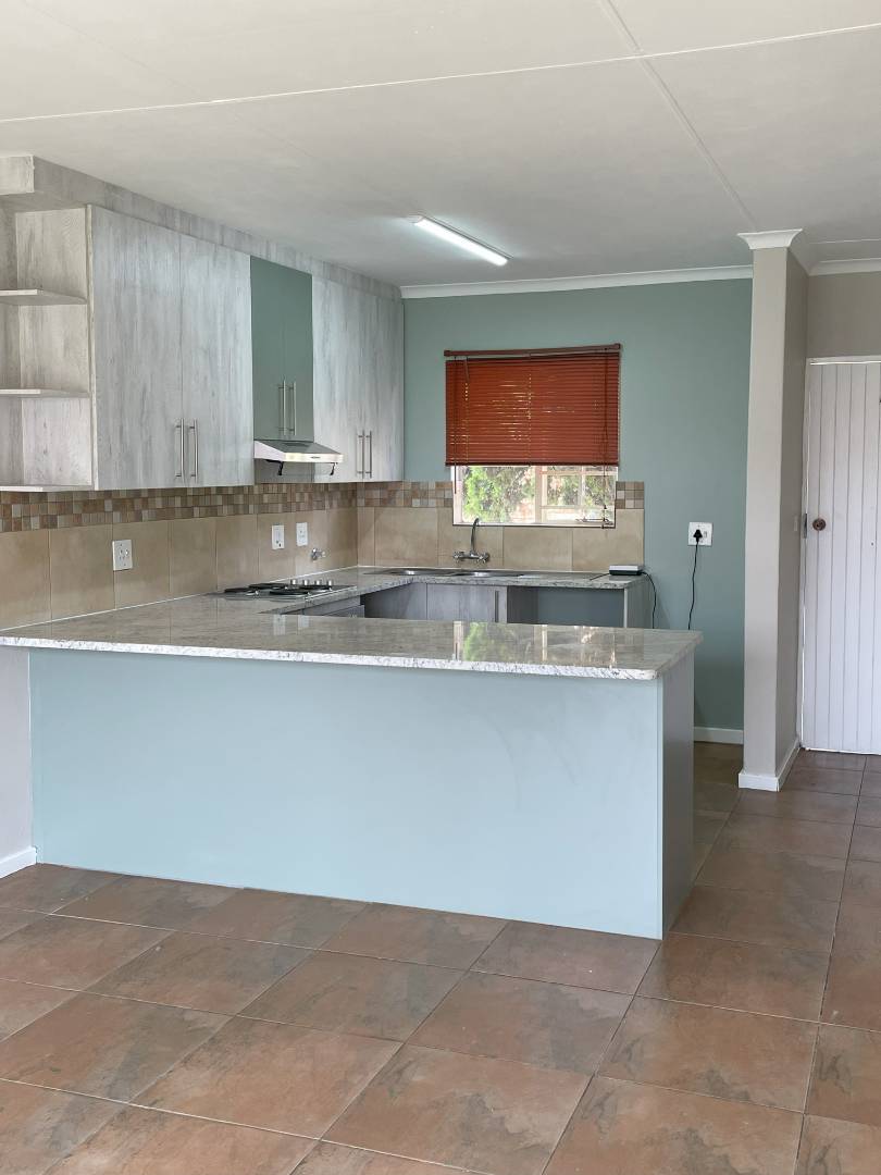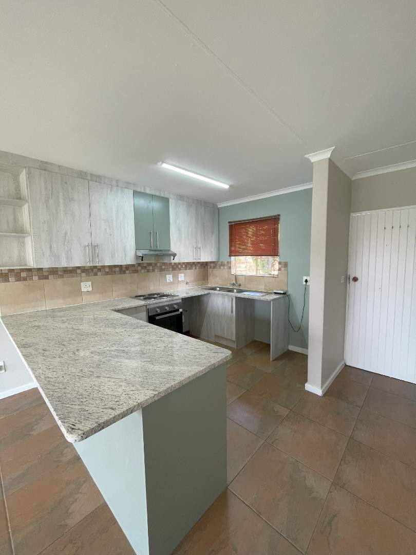 The townhouse features 2 well-appointed bedrooms with lots of built-in cupboards and 1 bathroom with a shower, basin, and toilet. The kitchen has ample cupboards and is open plan with the living area, leading out onto a private garden.