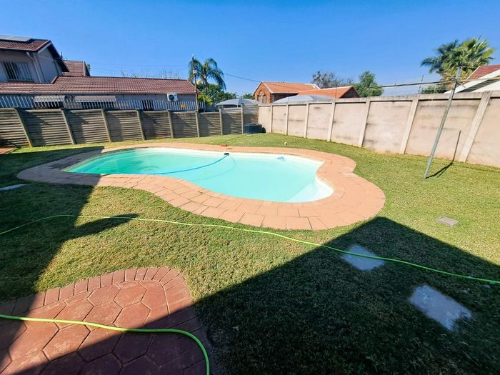 Entertain effortlessly in Rietondale's peaceful, secure suburb with a large covered patio and built-in braai overlooking pool and established garden; four bedrooms, 2.5 bathrooms, single garage.