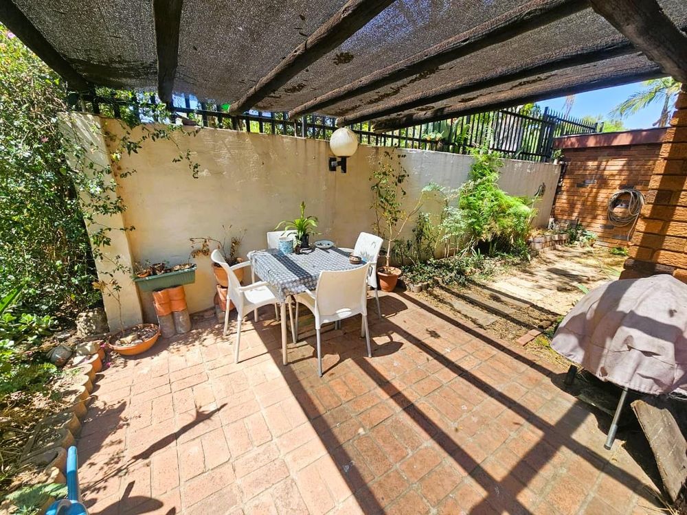 The townhouse features 2 bedrooms, 2 bathrooms, 2 lounges, a dining room, a study, and a functional kitchen – all designed with easy, everyday living in mind. Outdoor spaces include a private garden, a ground-floor patio, and a second patio on the upper level, ideal for relaxing or entertaining.