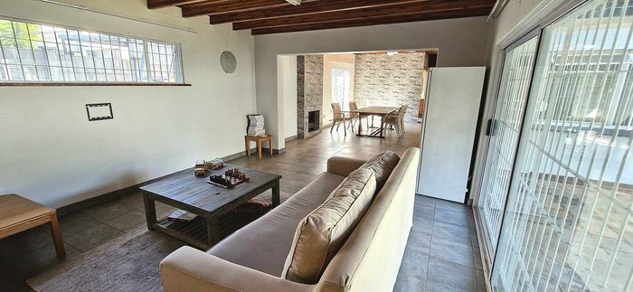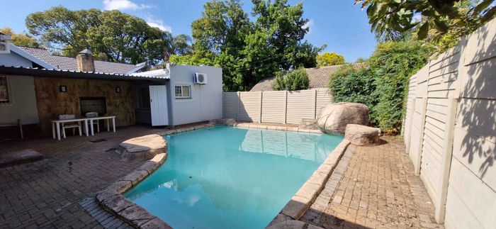 Entertainer's paradise in leafy Rietondale, steps from parks and the University of Pretoria, featuring a pool with built-in braai, lapa, borehole irrigation, four bedrooms, two bathrooms, double garage.