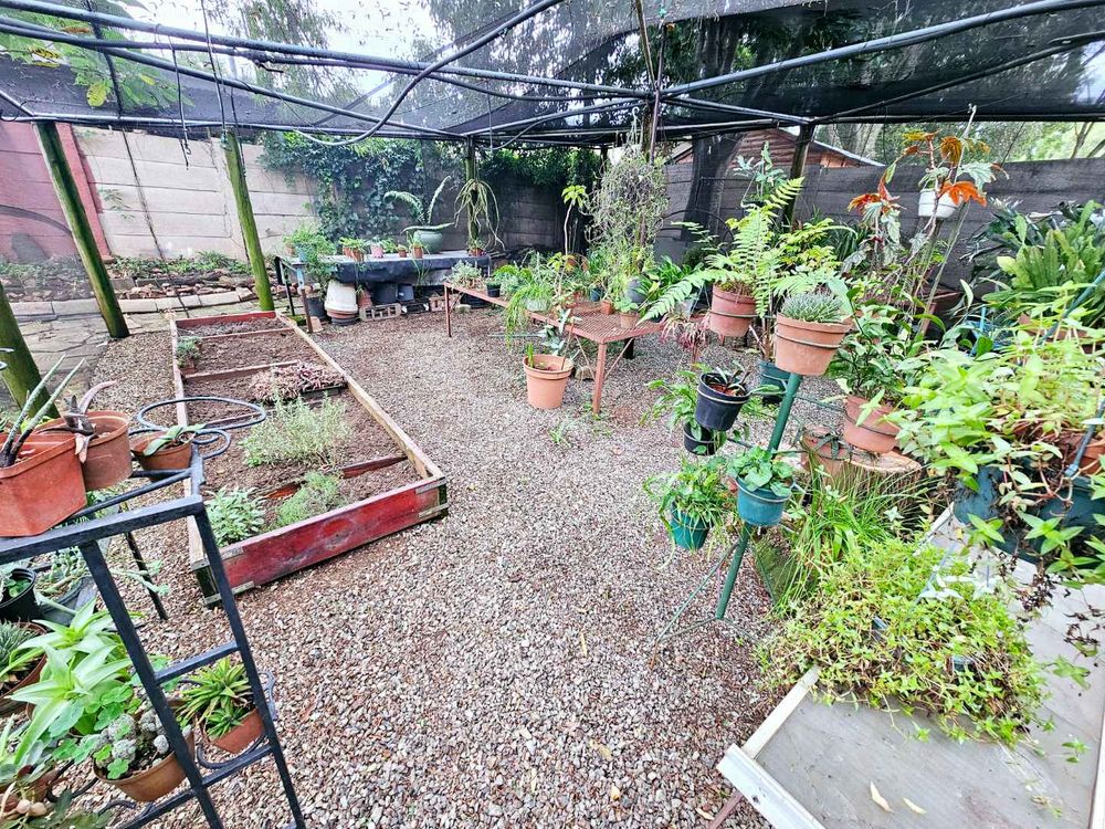 The outdoor area is a rustic paradise, featuring a wrap-around patio overlooking a breathtaking garden, complemented by a lovingly tended greenhouse, ideal for plant enthusiasts.