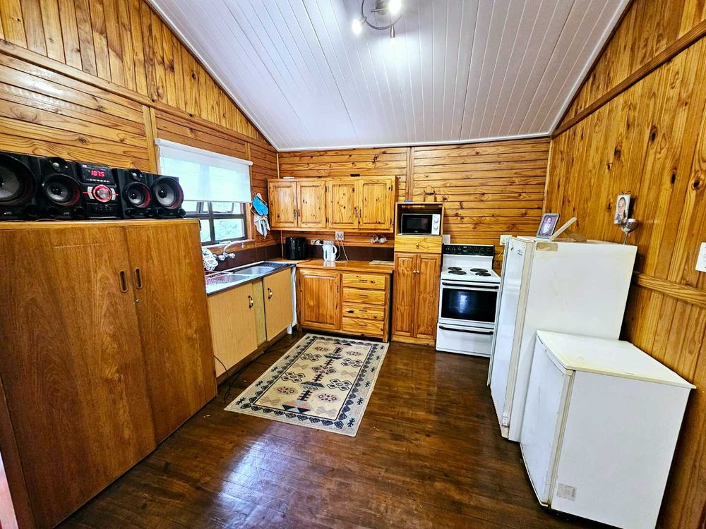 Experience the essence of rustic elegance in this beautifully crafted timber home. The spacious lounge, imbued with a rustic ambiance, extends into a kitchen that maintains the home's traditional charm.