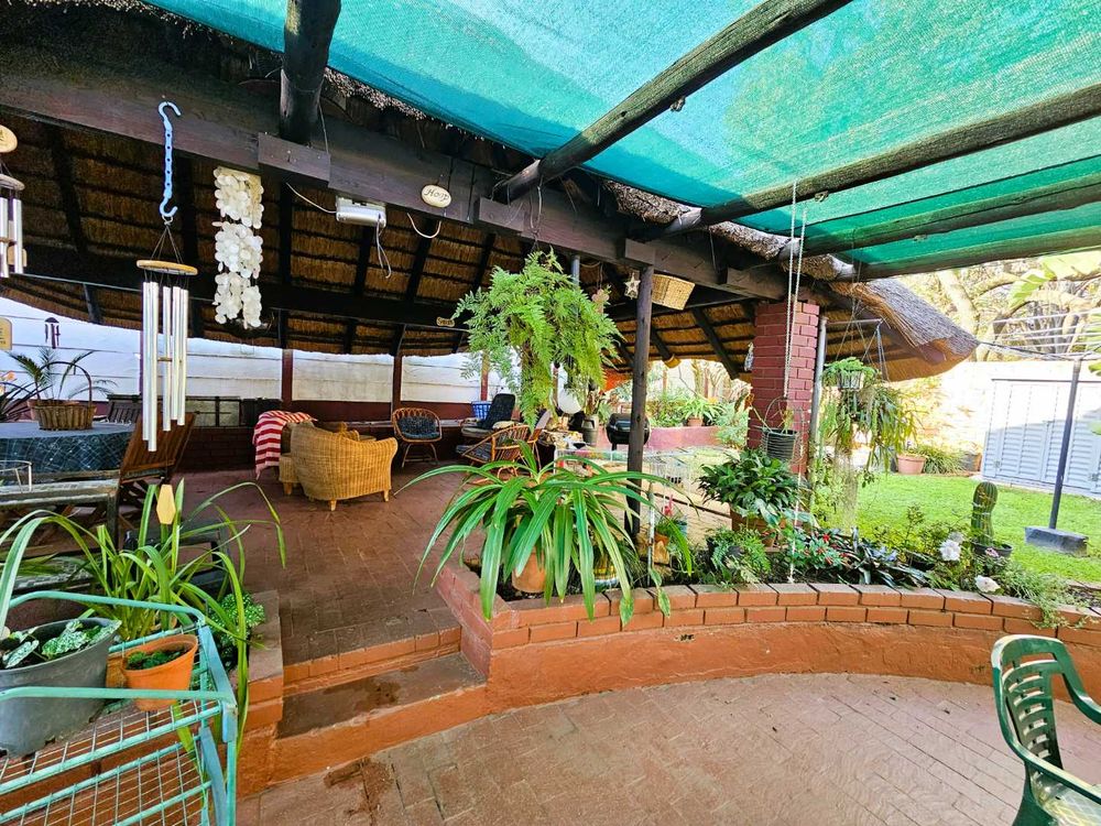 The lush, green garden is a peaceful retreat, complete with a lapa for outdoor enjoyment.