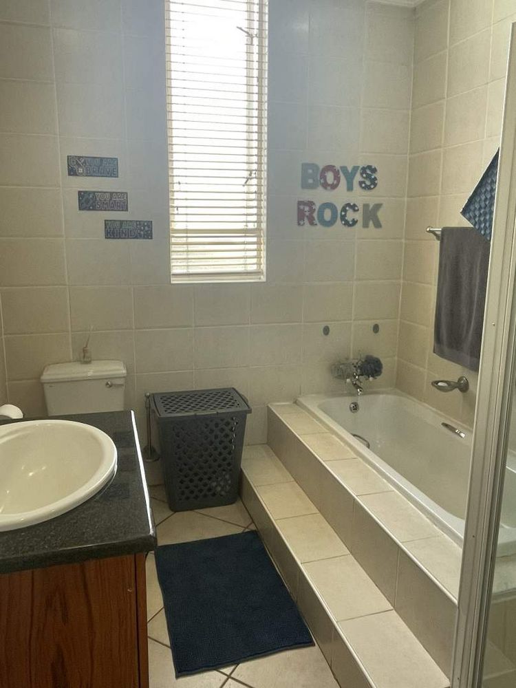 Beautiful well-kept and spacious family home located in the highly sought-after Woodlands Lifestyle Estate. This property offers a perfect blend of comfort and style. Upstairs, you will find three spacious bedrooms, including a master suite with an en-suite bathroom, a full family bathroom, and a dedicated study. The heart of the home is the well-appointed kitchen, featuring granite countertops, ample cabinetry, and a separate scullery. The kitchen seamlessly integrates with the open-plan living areas. The enclosed patio offers a built-in braai and pizza oven, with views of the large established pet-friendly garden. The property also boasts a double remote-controlled garage with direct access to the house for added convenience. This home is equipped with numerous extras, including a gas stove, a full domestic room, air conditioning throughout, a computerized irrigation system, 5000-liter water tank, solar system, and a downstairs guest toilet. Woodlands Estate is renowned for its high-level security, offering residents peace of mind and a community-oriented environment in the east of Pretoria. Enjoy access to a wide range of amenities such as a fully equipped gym, tennis, volleyball, and squash courts, a 22-meter training pool, kiddie's pool, clubhouse, children's play areas, scenic walkways throughout the estate, and fiber internet available to all households.