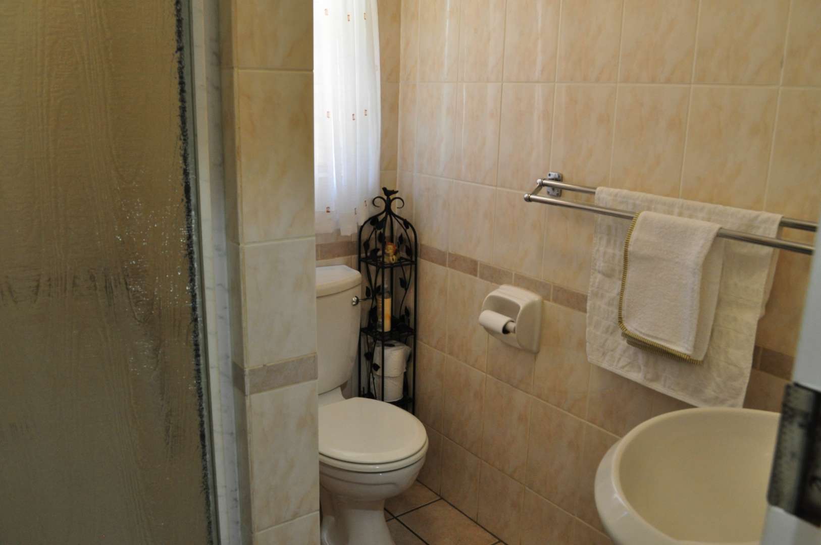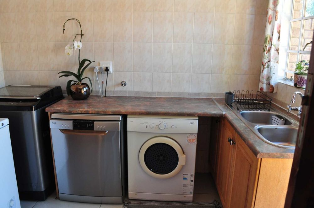 Out of the kitchen door at the back is an enclosed area with a washing line, a basin and a large covered space ideal for keeping a trailer or also for use of a nice braai area.