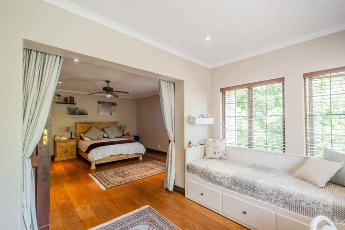 Entertainer's ridge-top home overlooking Moreleta Nature Reserve, offering privacy and secure living, with a large pool and braai lapa for gatherings — six bedrooms, six bathrooms, three-car garage.