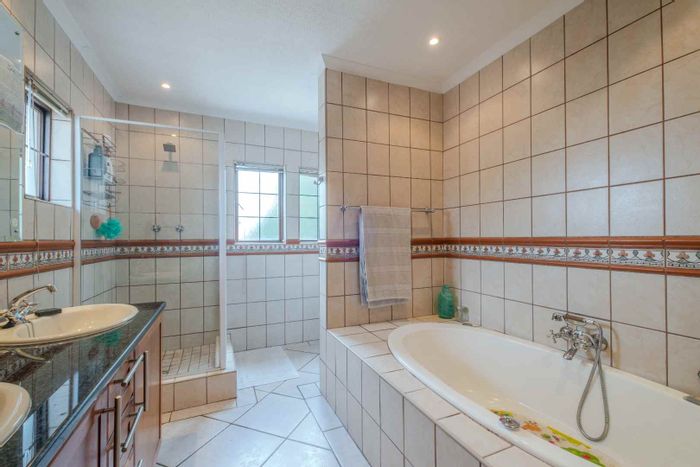Entertainer's home in Woodlands Estate, east Pretoria — pool, built-in braai and landscaped garden; solar and gas extras, with gym, courts and clubhouse. 4 beds, 2 baths, double garage.