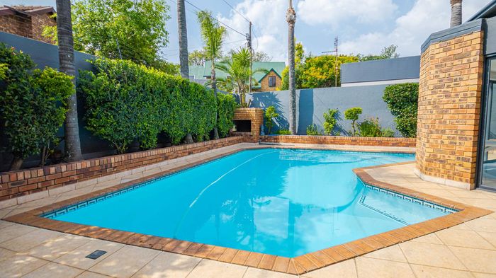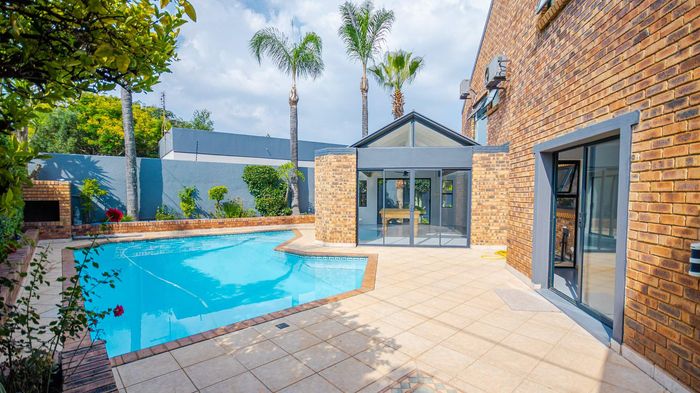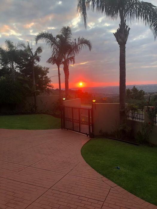 Entertainer's ridge-top home overlooking Moreleta Nature Reserve, offering privacy and secure living, with a large pool and braai lapa for gatherings — six bedrooms, six bathrooms, three-car garage.