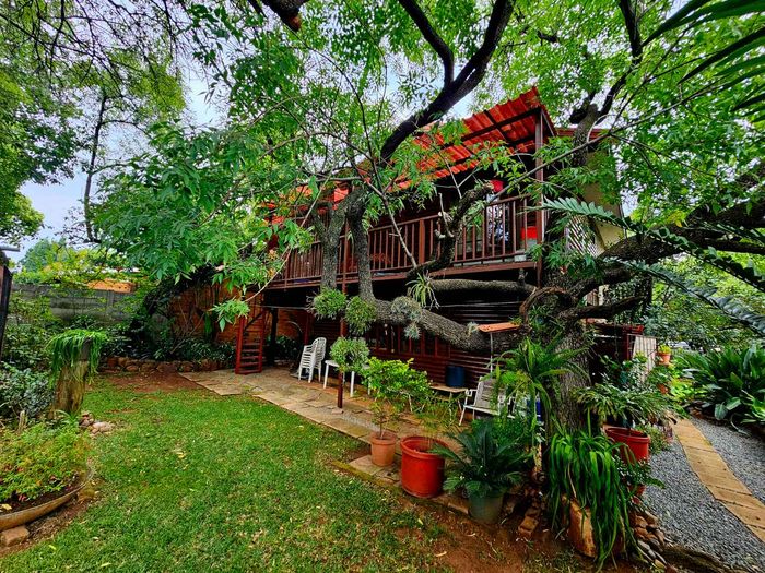 Prestige Properties offers a unique timber home in Rietondale, featuring rustic charm, spacious rooms, and a beautiful garden.