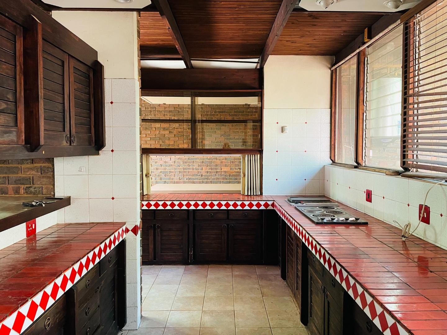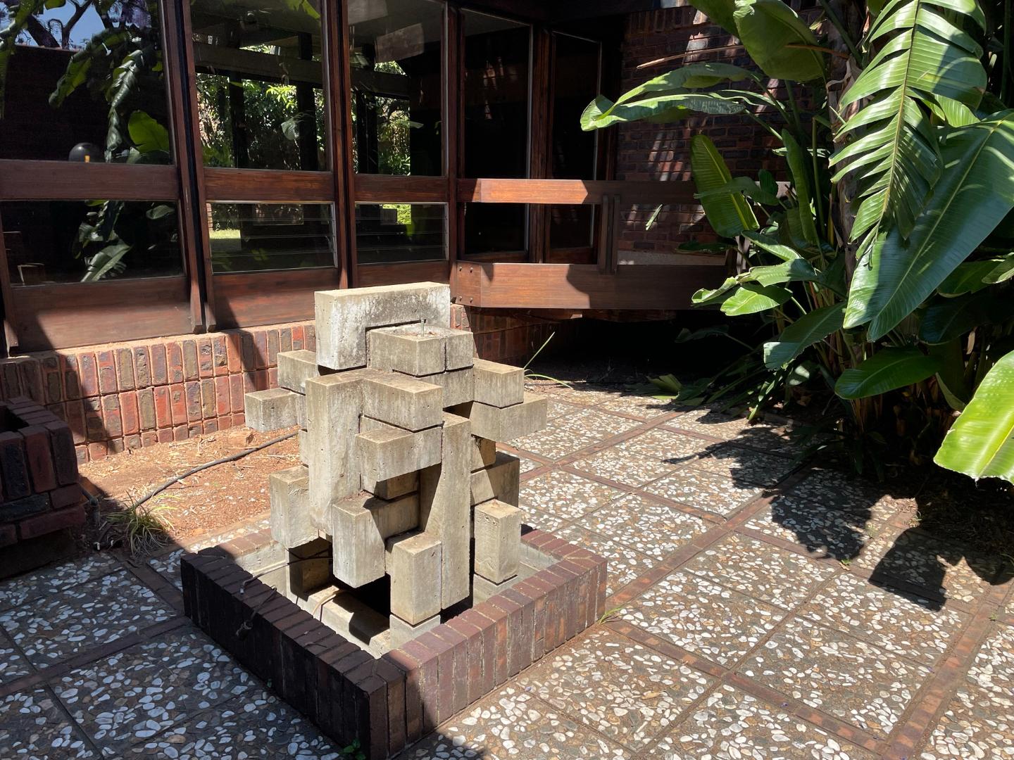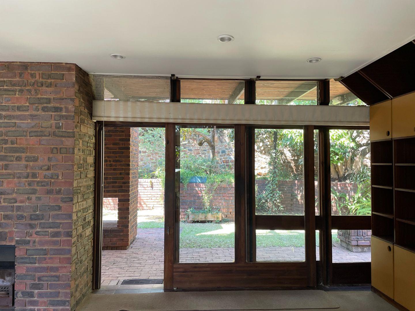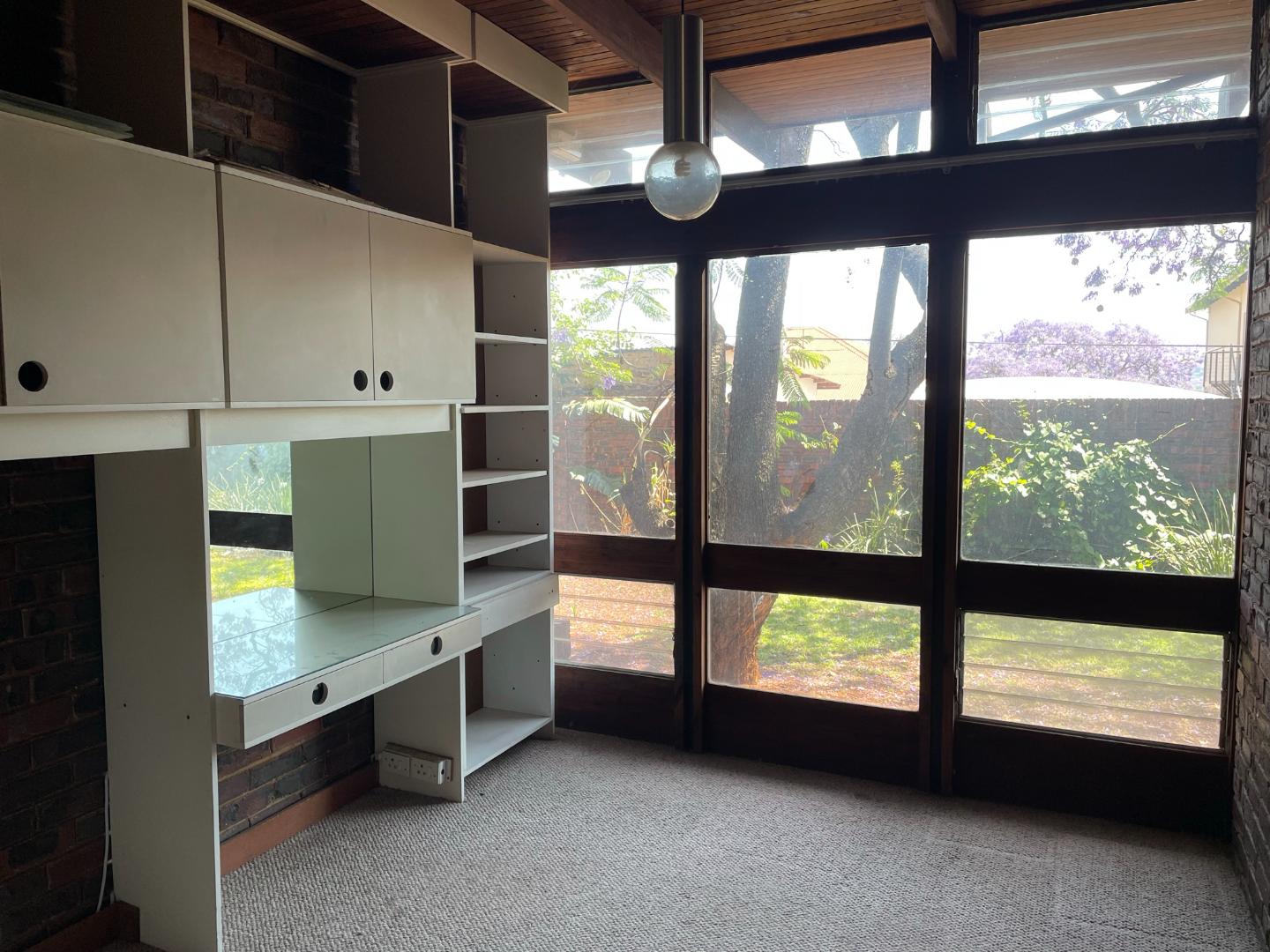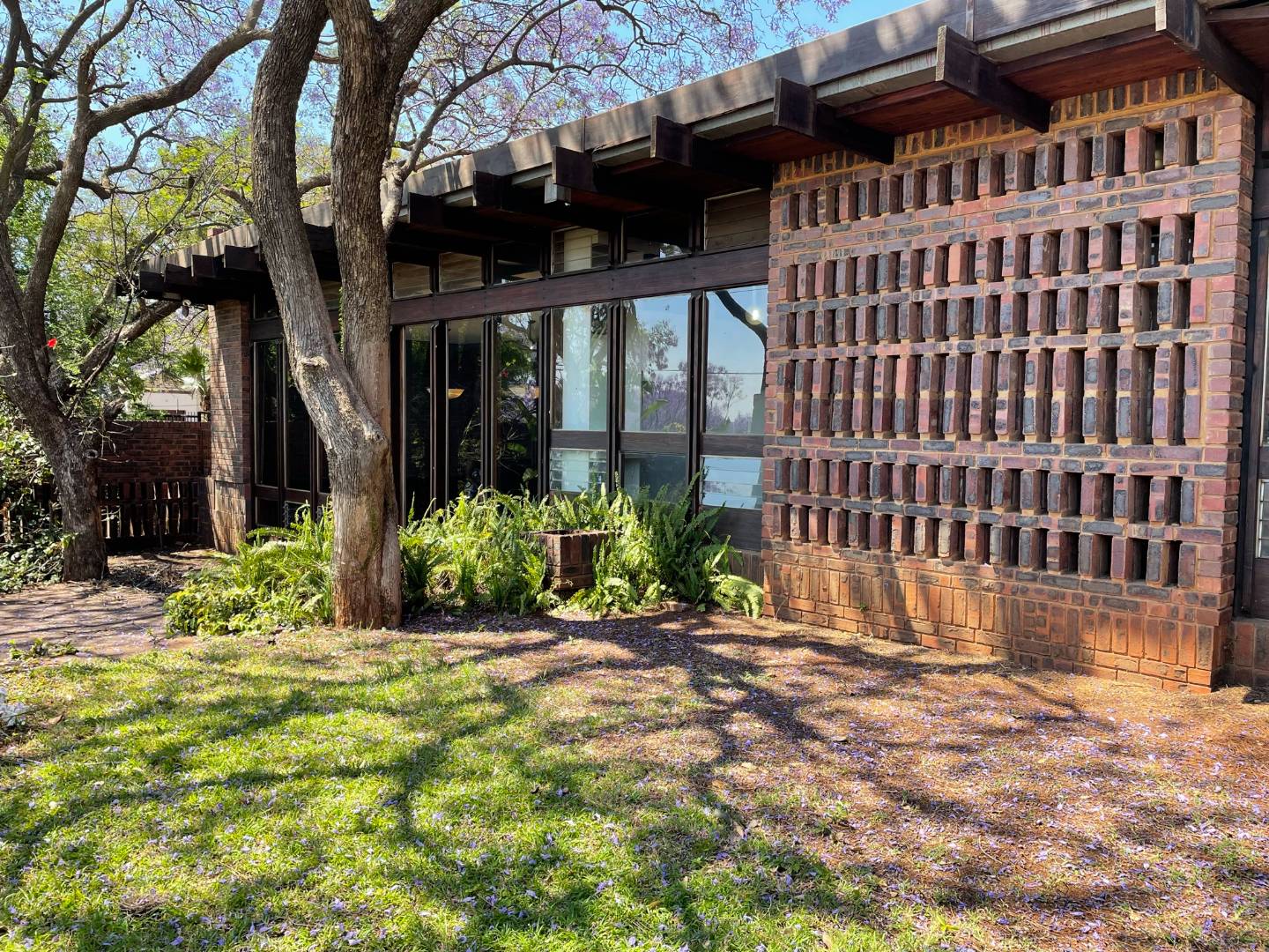 The large treed garden features fruit trees and a row of beautiful Jacarandas, along with a swimming pool and entertainment area.