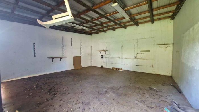 3 bedrooms, 2 bathrooms, 1 garage, 10 open parking spaces on a 1280 m² stand with large outbuildings.