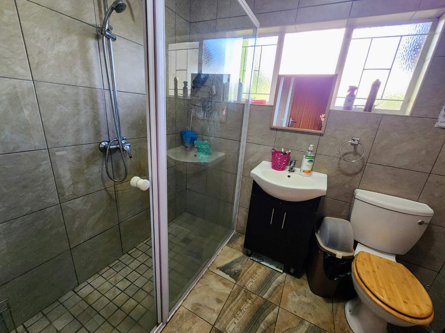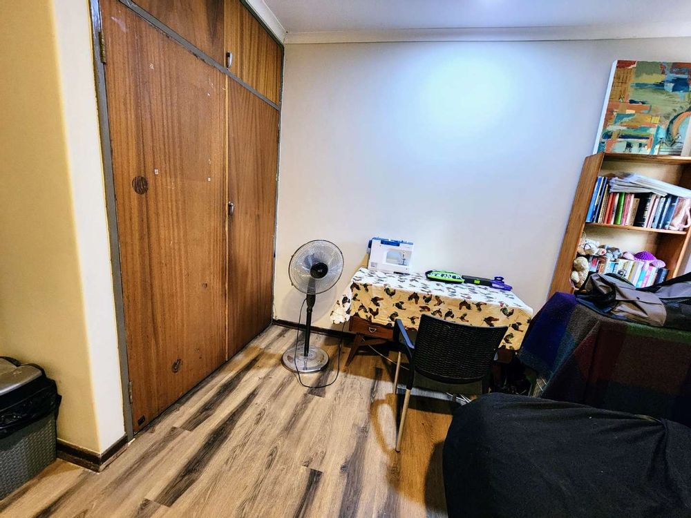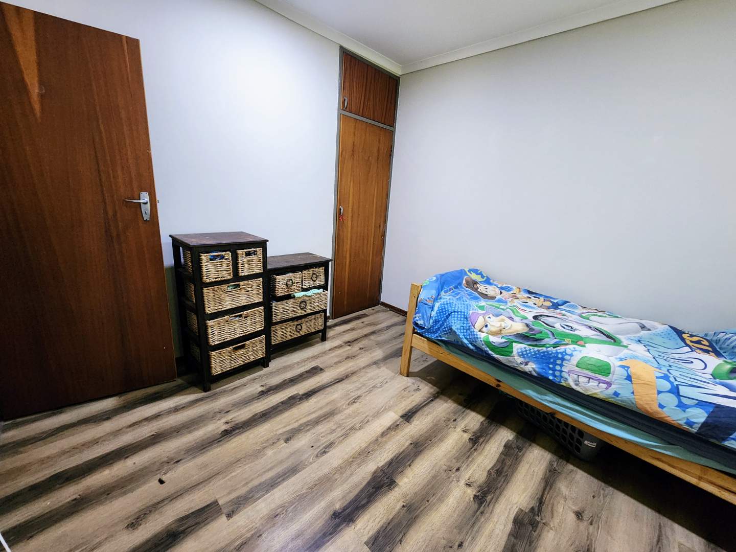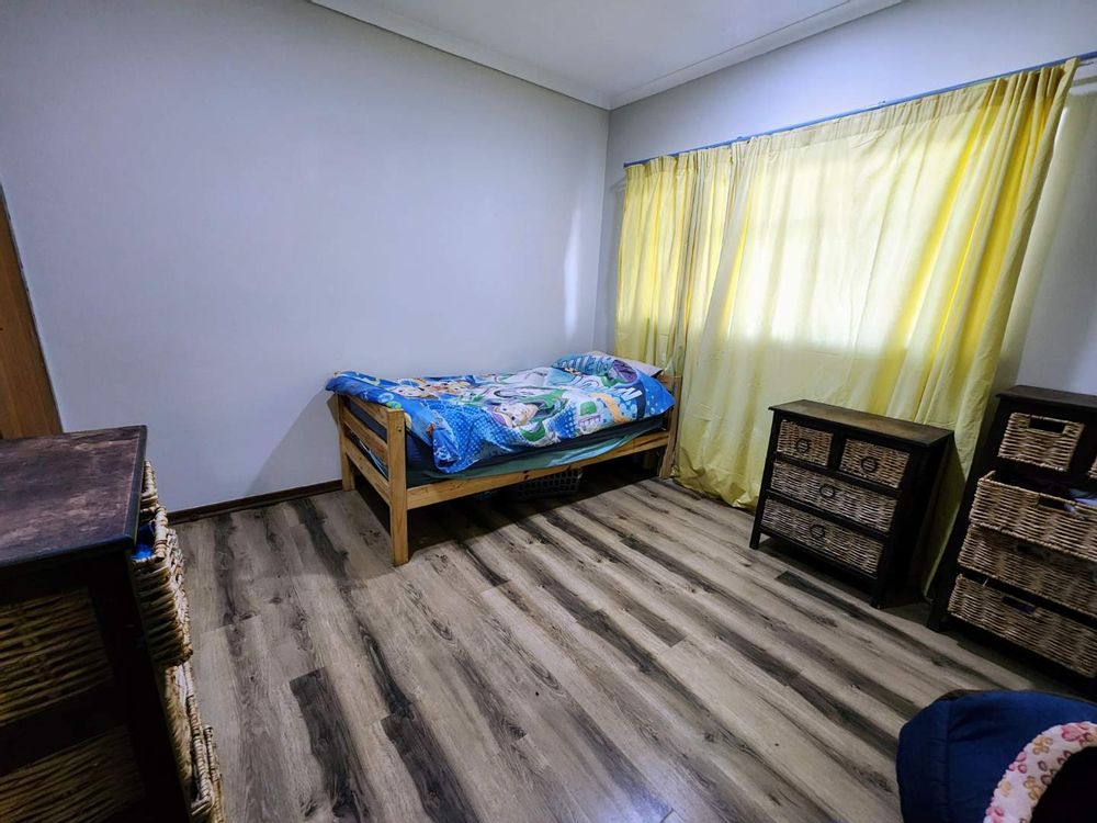 Accommodation includes four generously sized bedrooms, each flooded with natural light and equipped with built-in cupboards. The master suite is a private retreat featuring "His and Hers" built-in cupboards and a full en-suite bathroom. The remaining three bedrooms are well-serviced by a neat second bathroom equipped with a shower, basin, and toilet.