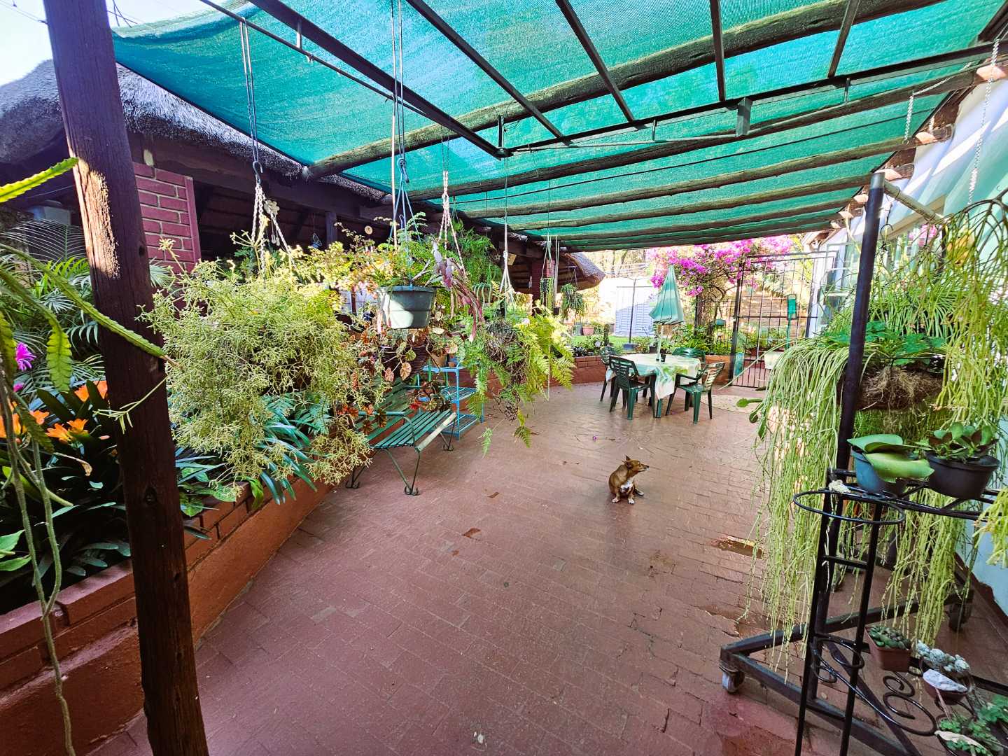 The lush, green garden is a peaceful retreat, complete with a lapa for outdoor enjoyment.