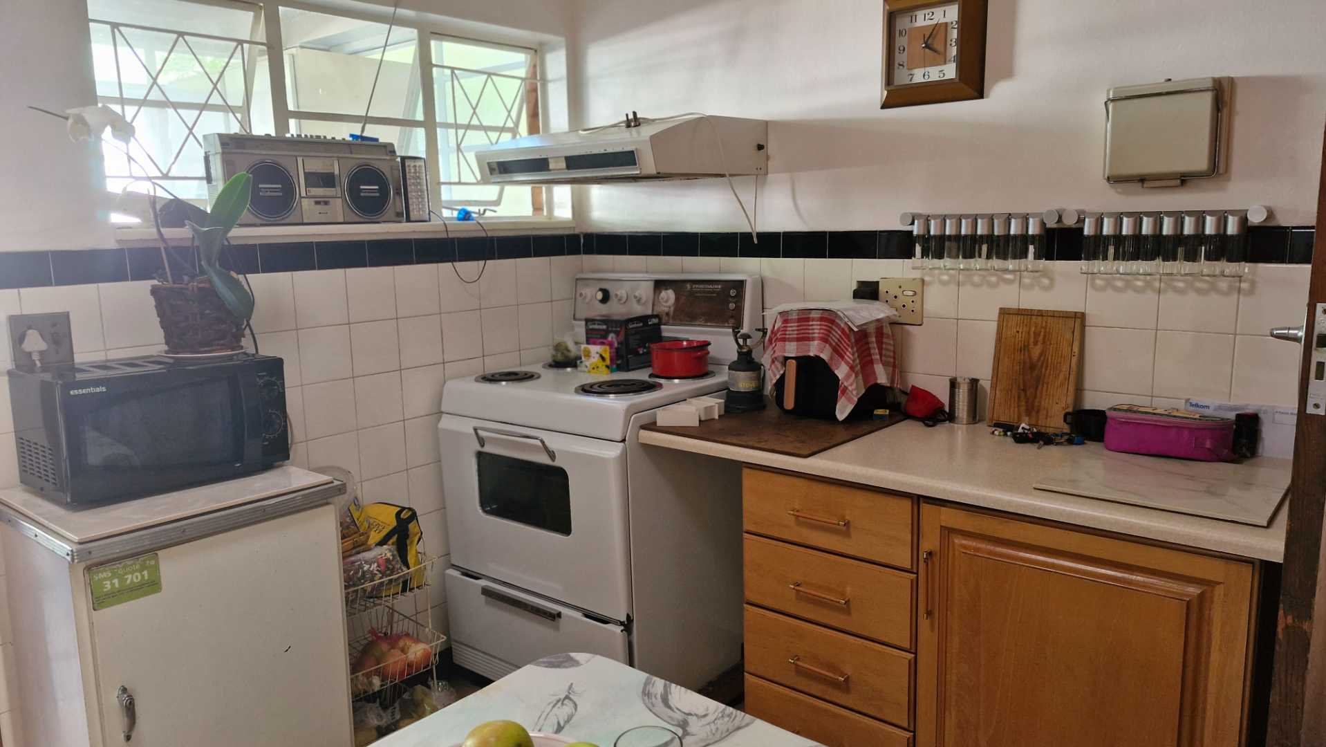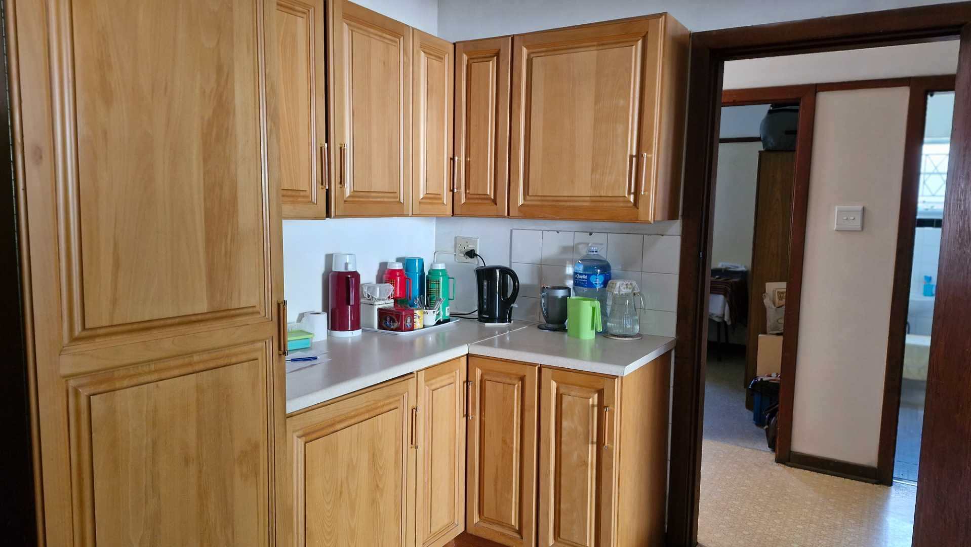3 bedrooms adorned with built-in cupboards are all flanked by the kitchen as the centre piece where mom would spend hours creating those meals. Back in the day homework was also done lovingly.