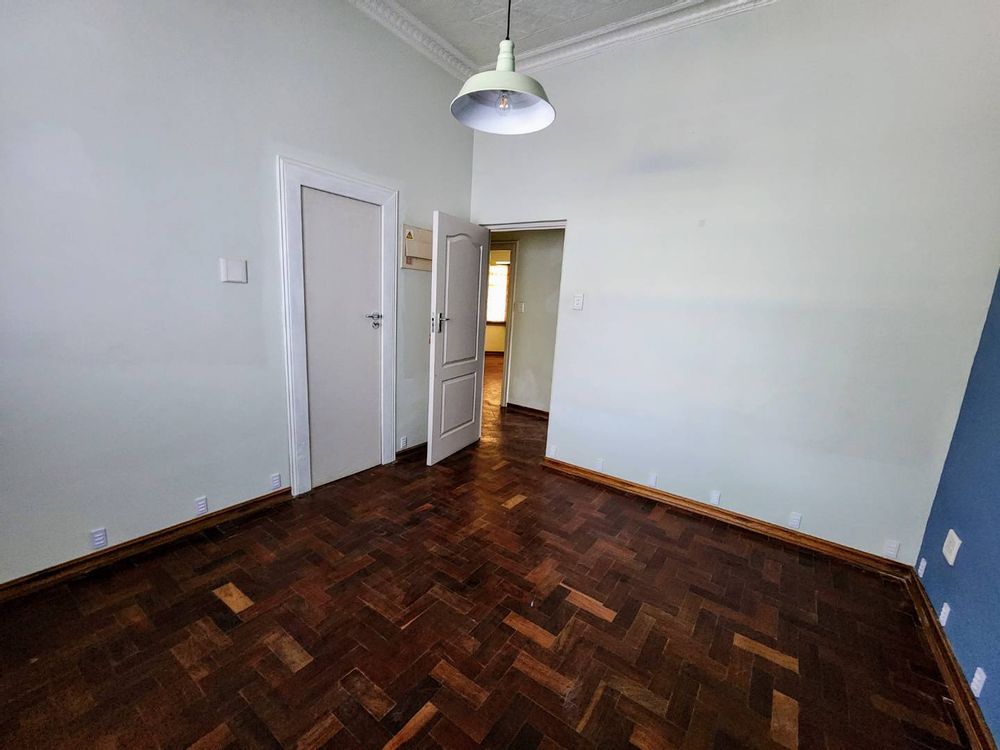 The second bedroom, with parquet flooring and steel pressed ceilings, boasts its own walk-in wardrobe, while the third bedroom, adorned with parquet flooring and a wooden ceiling, offers a retreat bathed in natural light. The guest bathroom, with wooden floors and a free-standing bathtub, promises relaxation in a setting of timeless elegance.